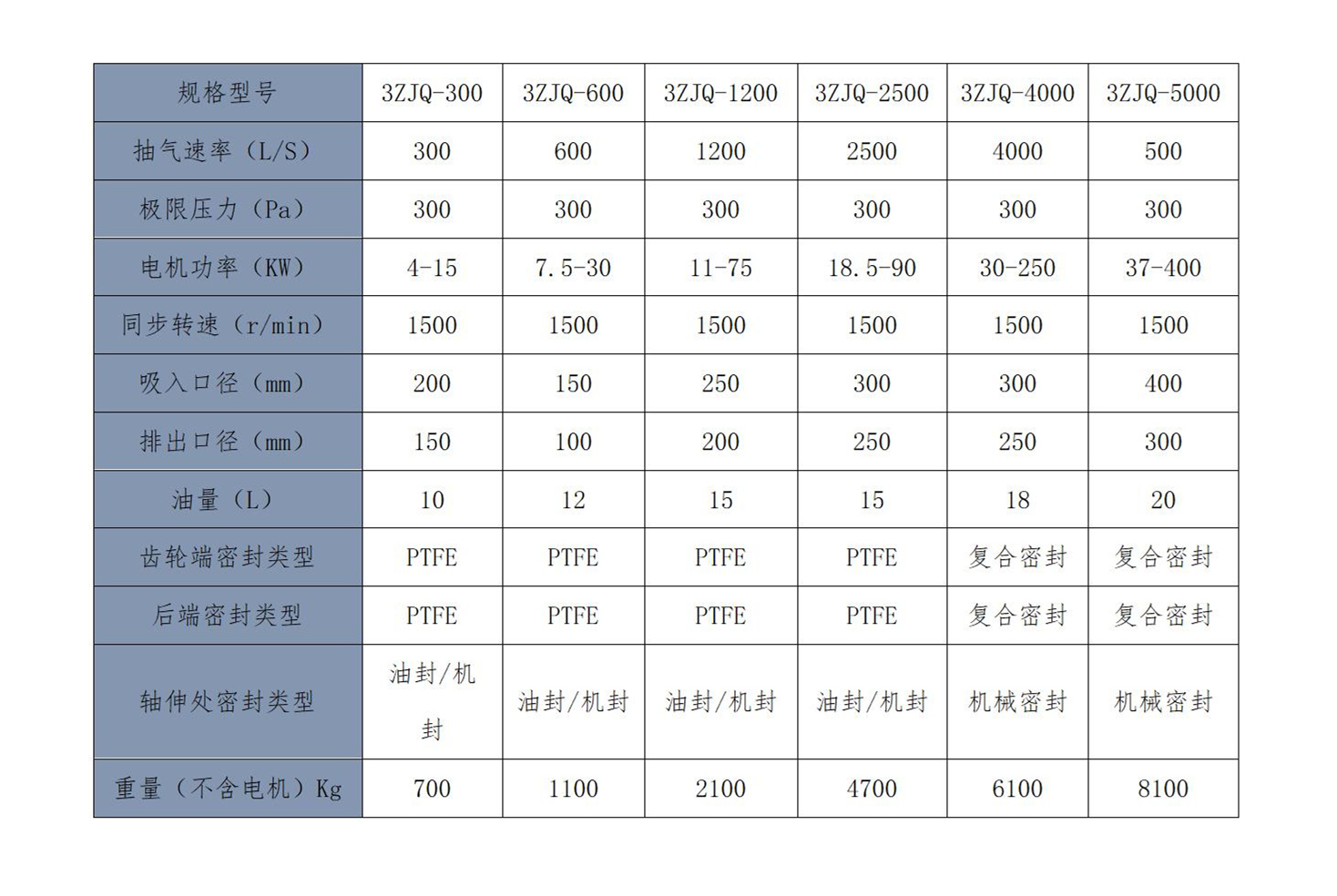 三級(jí)氣冷羅茨泵技術(shù)參數(shù)