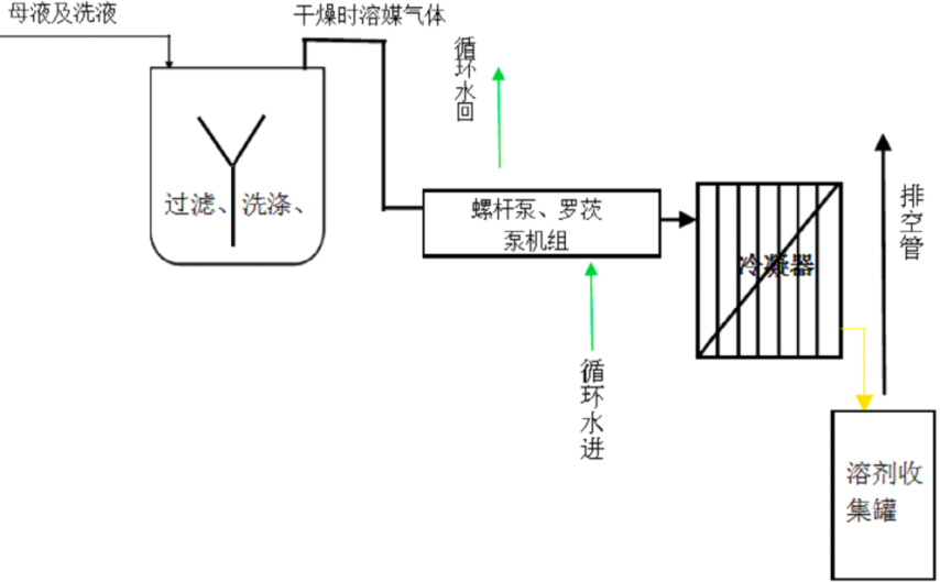 干式螺桿真空泵在減壓干燥過程的工藝流程圖